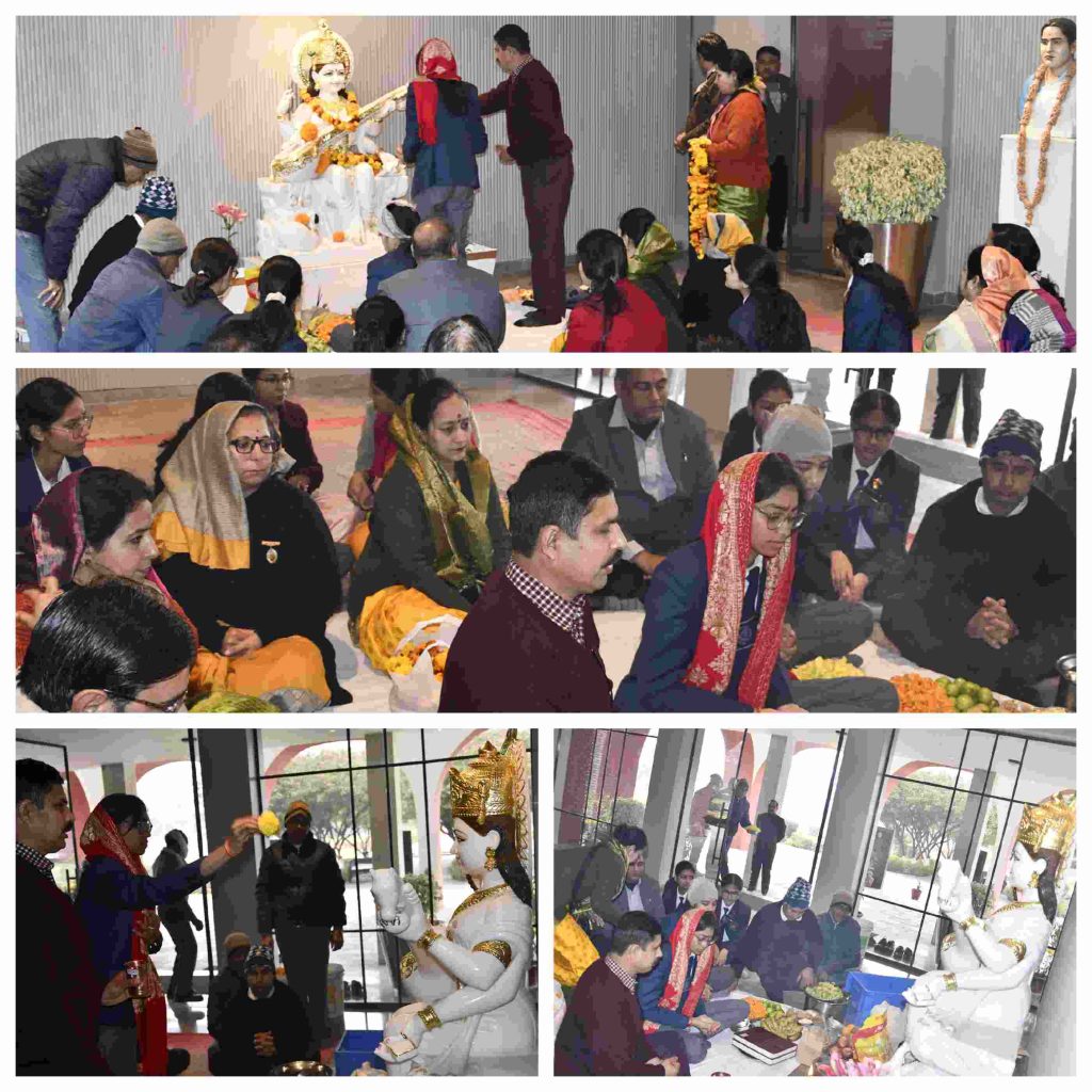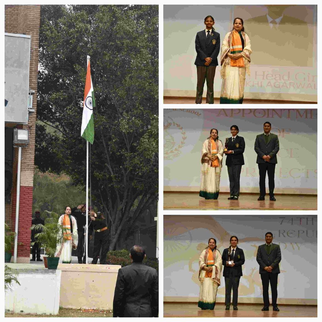 It was an auspicious and grand occasion as VDJS celebrated the 74th Republic Day and Basant Panchami on 26th January to mark the glory of the Constitution of India and the birth anniversary of Maa Saraswati, the goddess of learning, music, and the arts. The festival began with the puja of the Goddess Saraswati followed by the unfurling of the National Flag by Ma’am Principal, Ms. Shalini Mehrotra. The auditorium reverberated with celestial blessings as the Jindalites sang the ‘Saraswati Vandana’ along with the school choir. The designated Vice Prefects of the Student Prefectorial Board for the session 2022-23 were appointed as officials by Ma’am Principal. Dr Shriram Gautam enlightened the gathering with the significance of Basant Panchami and the story of the birth of Maa Saraswati. In her address, Ma’am Principal shared with the Jindalites the importance of ‘Basant’ as it heralds the coming of the Spring season and the initiation of ‘new beginnings’ with their roots in the Indian constitution and culture. As curiosity and questioning are the core pillars of the Vedantas, the Humanities Department conducted the Inter-House Heritage India Quiz Final 2023 in the auditorium, not to just assess the awareness of the Jindalites about their motherland, but also to relive the glory of rich cultural heritage that India represents. In a nail-biting Final Round, Kasturba House held on to their nerves to pip Sarojini House in the tie-breaker to lift the coveted winners’ trophy. The winners were felicitated by Ma’am Principal.